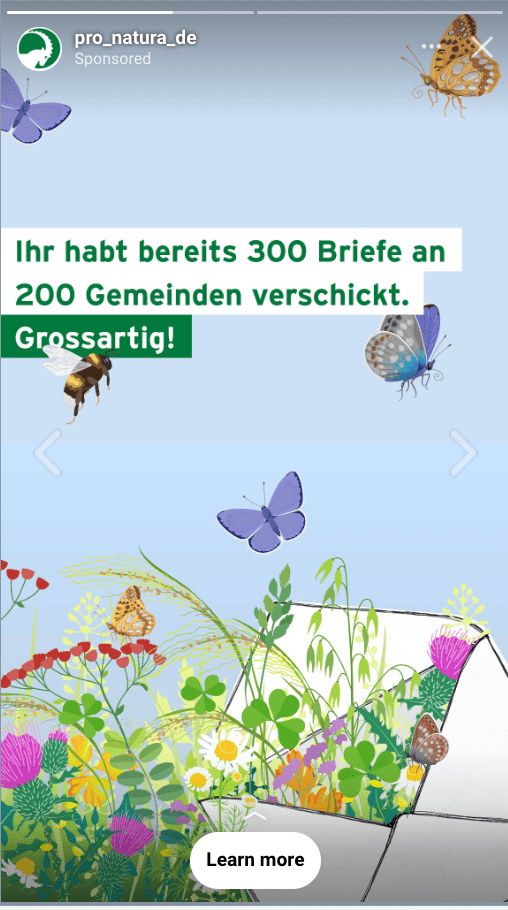 - Person A wird über ein Online-Ad oder den Newsletter auf die Aktion aufmerksam. CTA: Fordere deine Gemeinde auf, mehr für die Biodiversität zu tun.