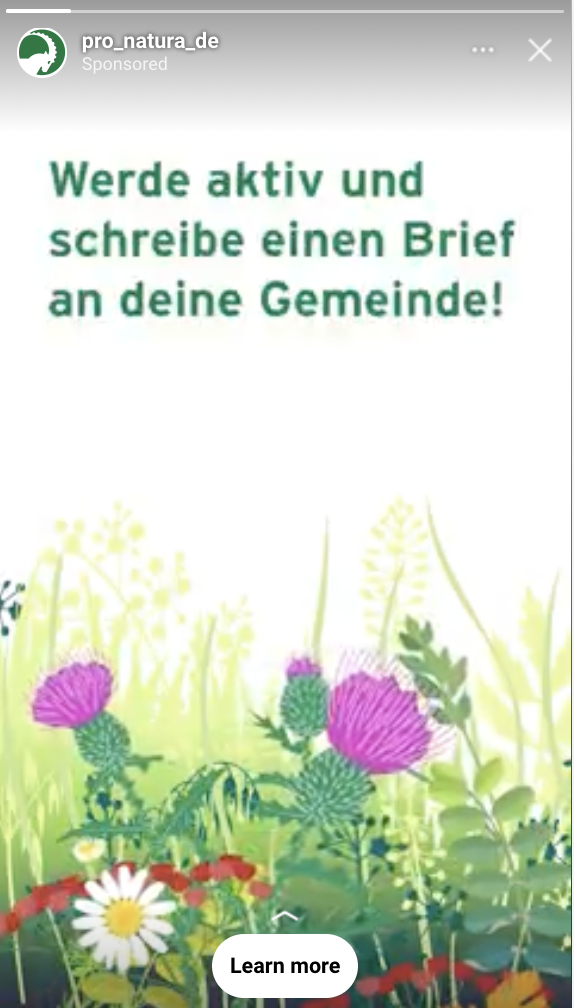 Werbekanäle: Facebook, Instagram, Newsletter, Pro Natura Magazin